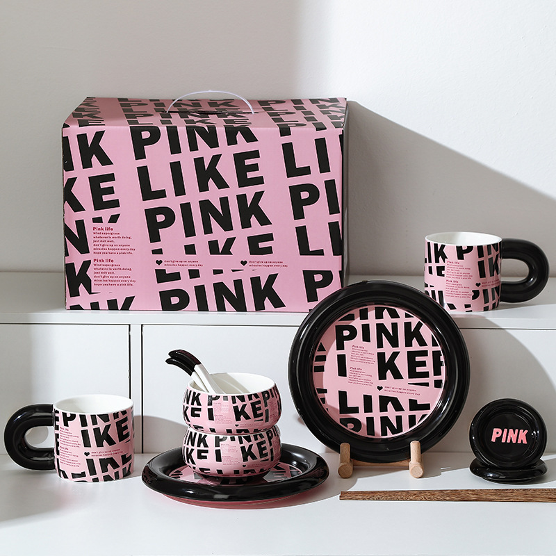 加入PPT颜色【粉黑系列】二人食餐具12件礼盒装 包装数量:12...