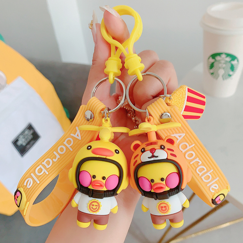 可爱小黄鸭 汽车竹蜻蜓涡轮增鸭 创意女书包钥匙扣 头盔链...