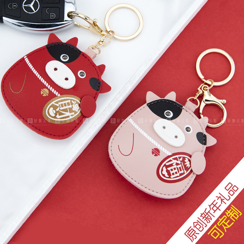 牛年招财招福挂件 PU皮创意钥匙扣 可爱多功能包挂件新年...