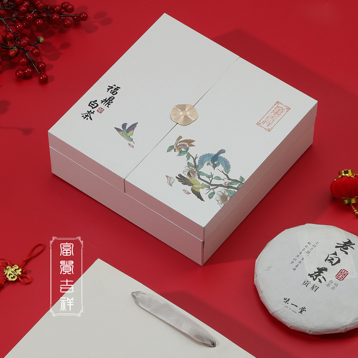 高档节日翻盖礼盒 新款老白茶茶饼盒礼盒 双...