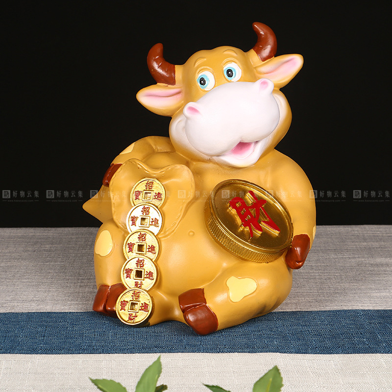福财牛存钱罐 牛年吉祥物 十二生肖工艺摆件 储蓄罐创意摆...