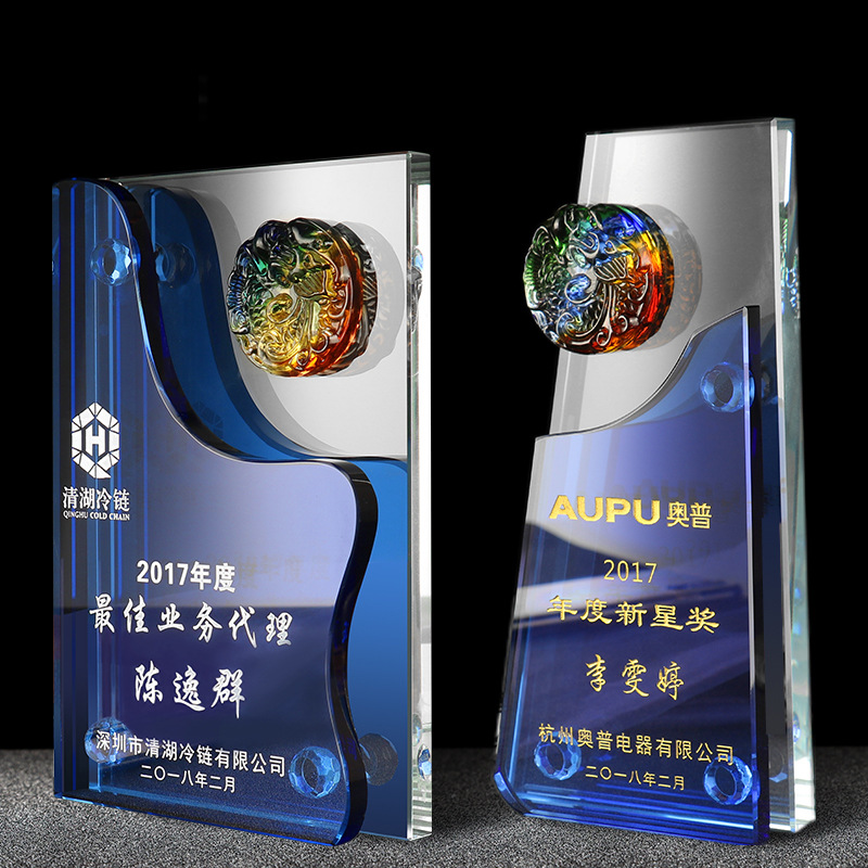 022年新品虎年大吉生肖老虎水晶琉璃奖杯奖牌公司年会颁奖...