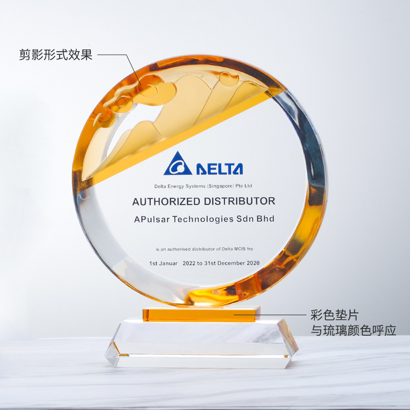 2022新品水晶琉璃纪念盘 优秀员工奖牌定制 周年荣誉退...