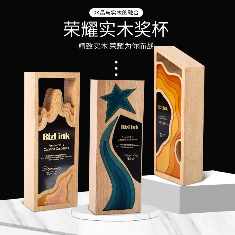 专业定做木质奖杯 创意免费刻字木质纪念品 实木员工荣誉奖...
