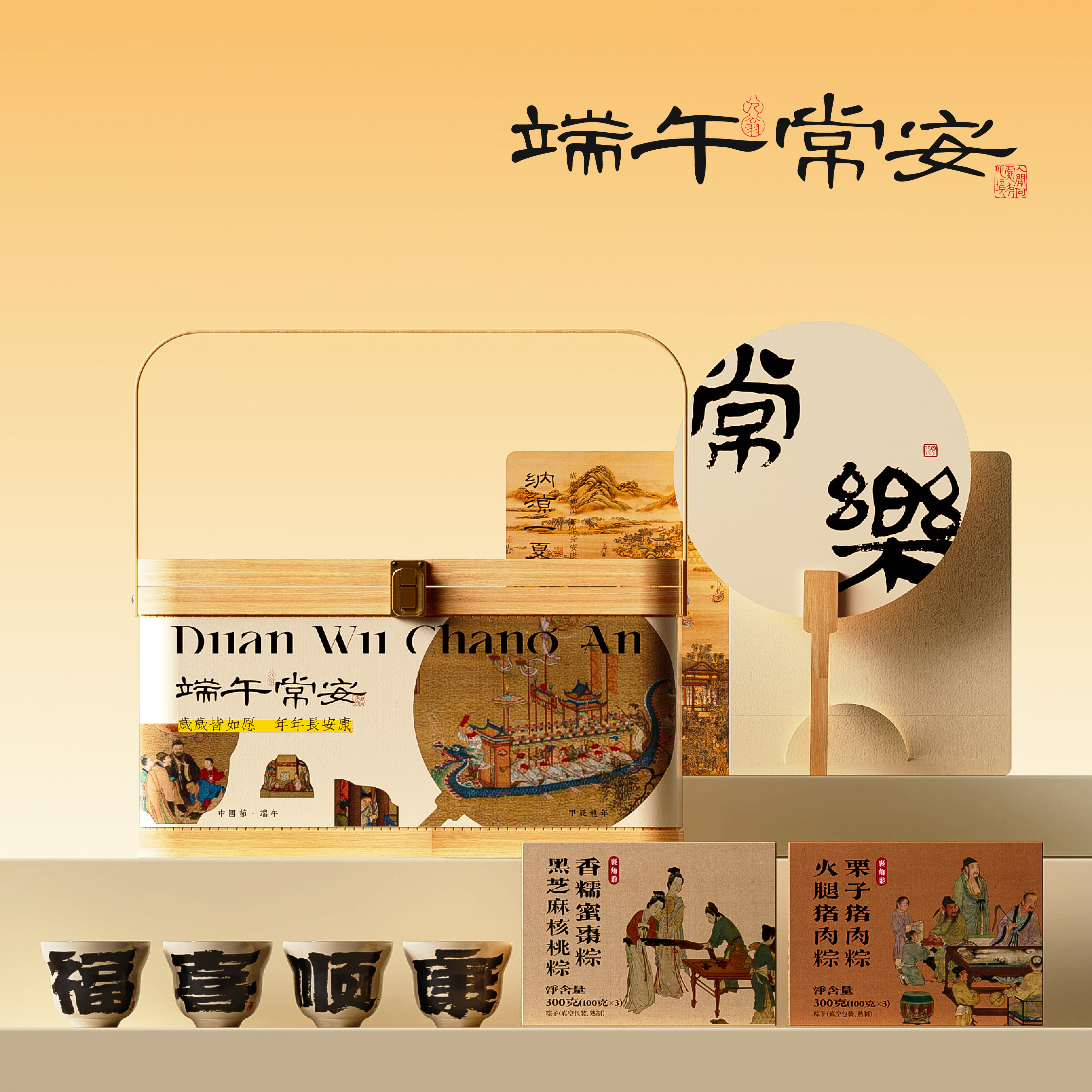 手提竹盒 * 1 五小芳粽 * 6 福喜顺康品茗杯 ...
