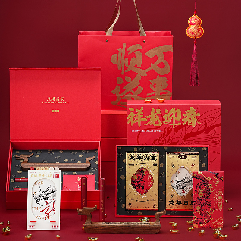 配置:木质香笼盒、好运檀香、龙年日历、祥龙香囊、红包