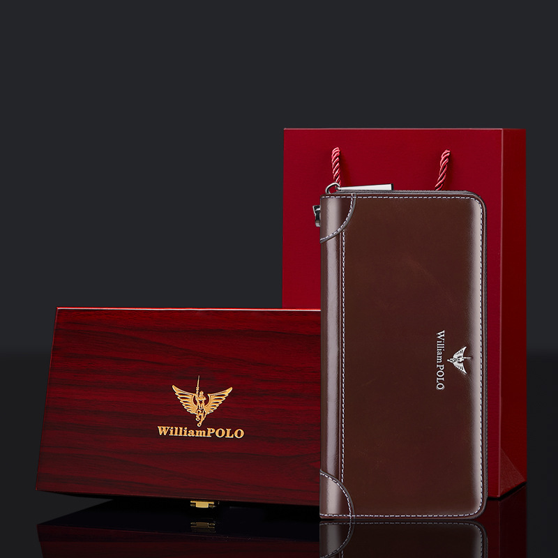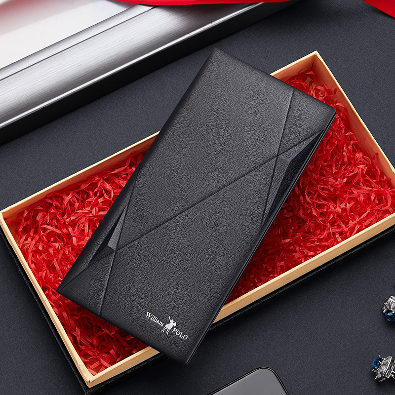 英皇保罗2021新款钱包男长款真皮多卡位牛皮超薄软皮夹批...
