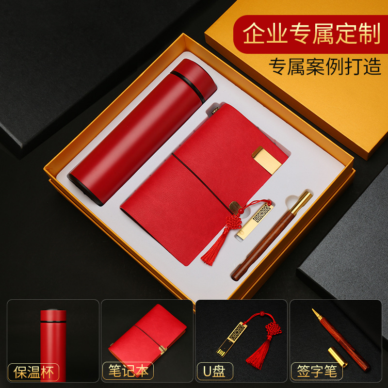 商务礼品套装定制logo公司年会促销实用红色套装保温杯纪...