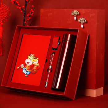 牛年红色日程本礼盒套装带保温杯u盘笔记本子文具金牛挑福