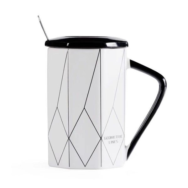 北欧个性陶瓷马克杯 创意早餐牛奶带盖勺杯子 创意个性简约...