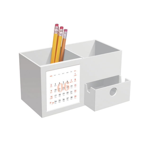 新款塑料创意笔筒台历办公桌日历收纳盒礼品2019广告台历...