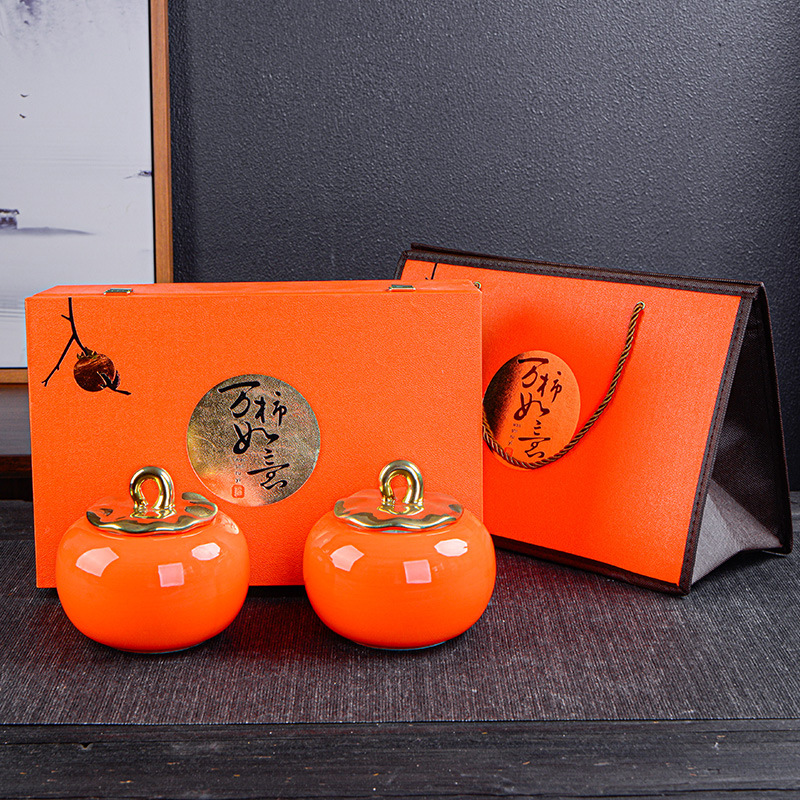 创意仿真柿子大号茶叶罐 家用万事如意商务瓷罐 高档礼盒陶...