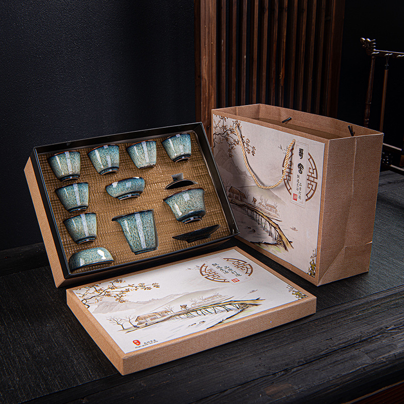钧窑陶瓷功夫茶具套装 复古窑变拉丝特色商务茶具礼品批发定...