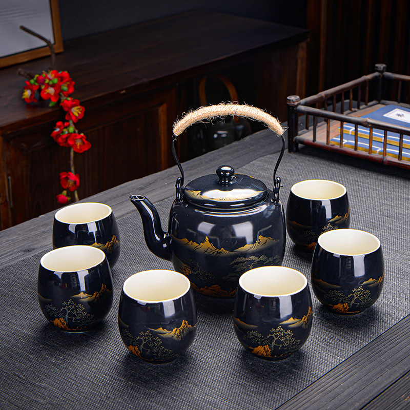 复古陶瓷茶具定制 大提梁壶茶具套装 特色茶水壶凉水壶商务...