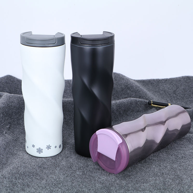双层螺旋咖啡杯 不锈钢真空保温杯 渐变随行礼品杯定制lo...