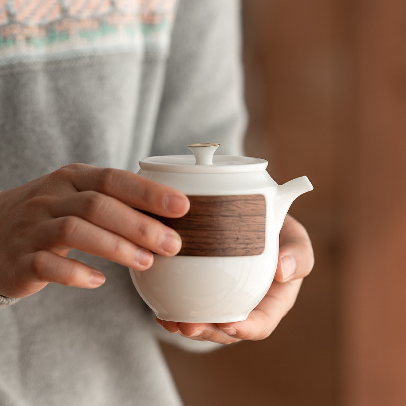 觅白手抓茶壶 防烫陶瓷手执壶 居家简约茶器 日式白瓷壶手...