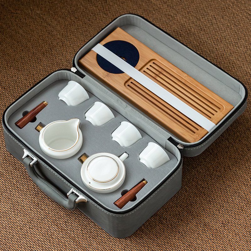白瓷便携式茶具套装 整套功夫侧把壶 轻奢旅行茶具logo...