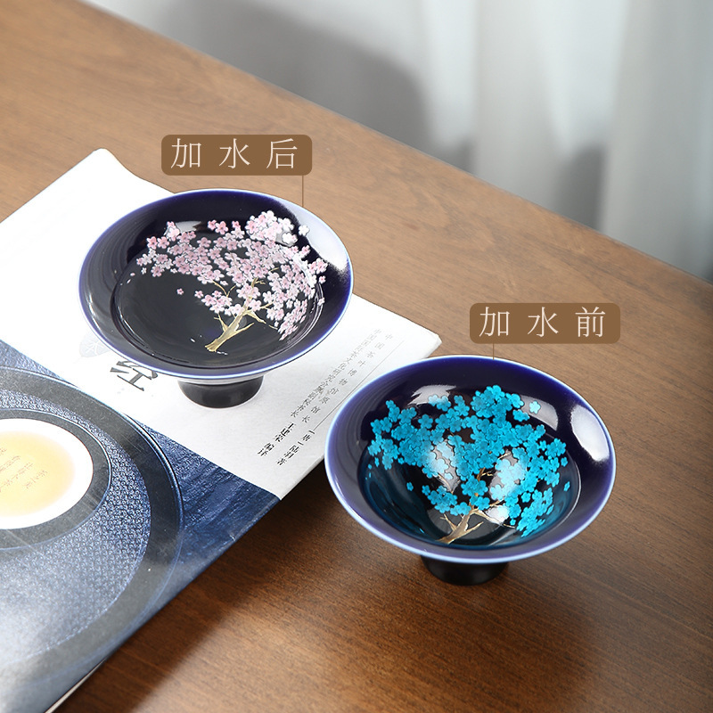 热变色杯桃花茶杯 单只斗笠品茗杯 陶瓷功夫茶杯 闻香杯茶...