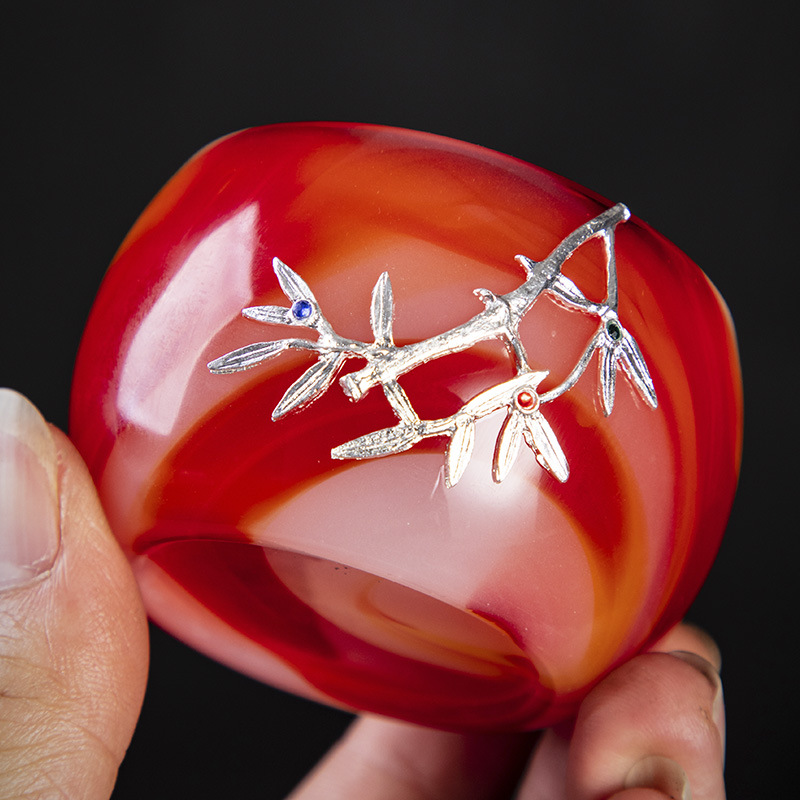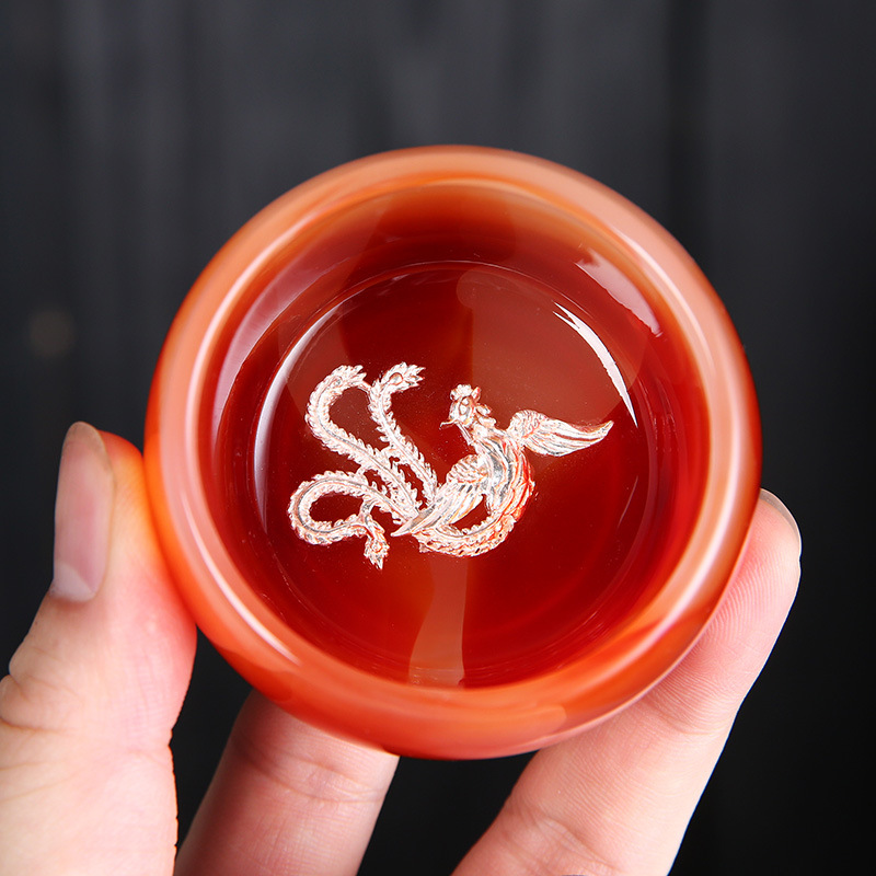 玛瑙玉瓷茶杯镶银主人杯 功夫品茗杯 琉璃玉石血菩提单杯喝...