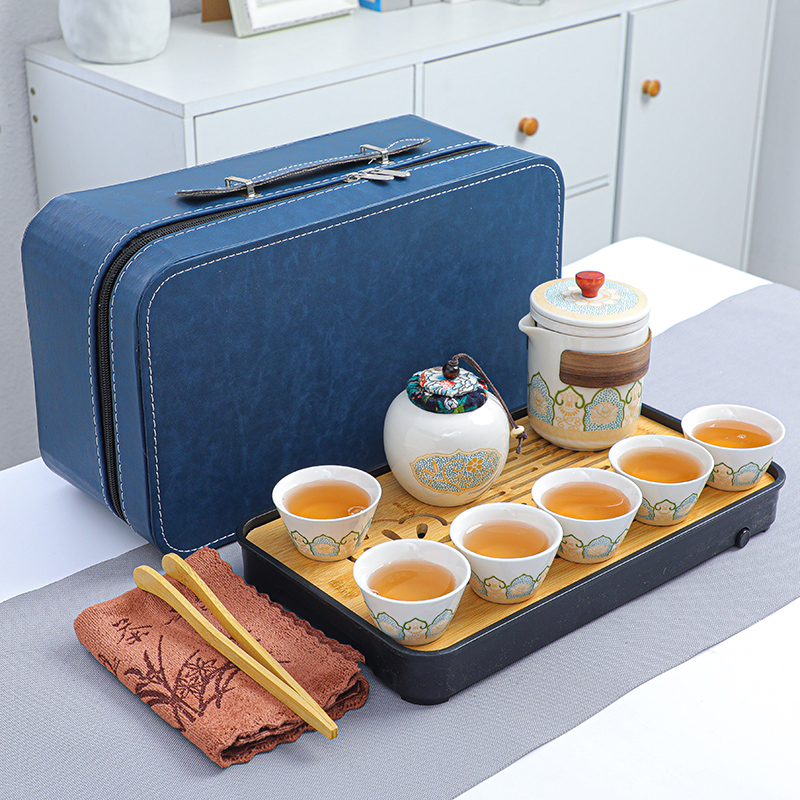 旅行功夫茶具套装户外陶瓷快客茶杯茶盘家用泡茶壶便携式礼品...