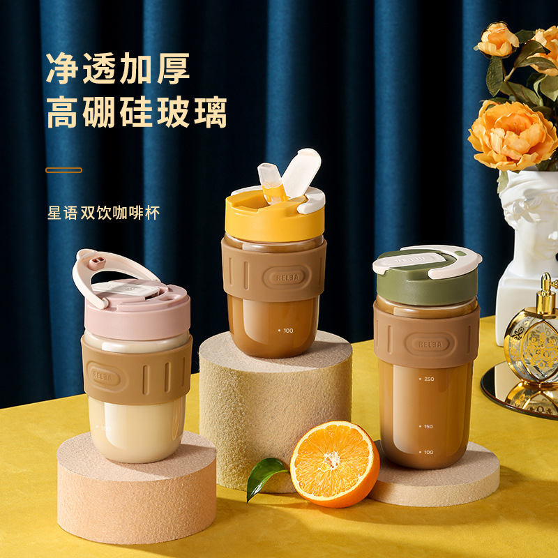 物生物玻璃水杯男女士简约便携带吸管泡茶杯韩版可爱ins咖...