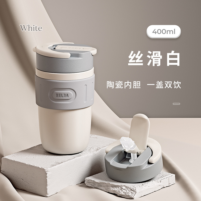 星语保温杯女咖啡随行杯子高颜值不锈钢大容量吸管学生水杯