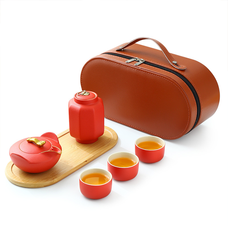 配置:壶、茶叶罐、杯子、茶盘、手提箱