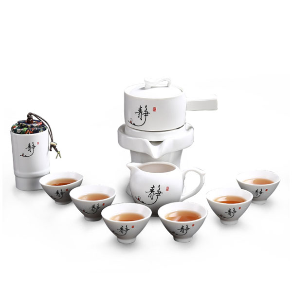 陶瓷石磨自动茶具套装懒人时来运转泡茶器活动礼品可定制lo...