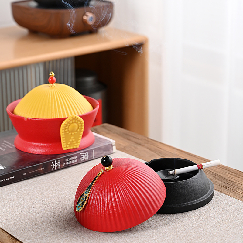创意官帽烟灰缸 个性家用带盖防飞灰烟缸 时尚中式烟灰缸支...