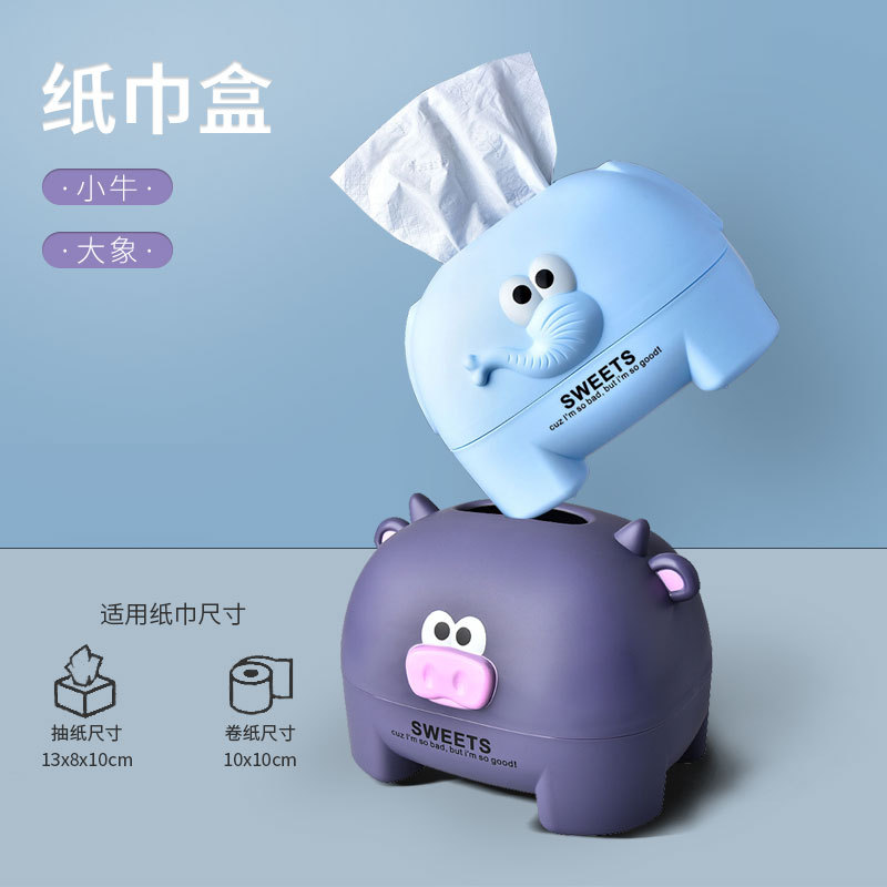 卡通小牛纸巾盒 家用桌面卷纸筒 客厅卫生间餐桌茶几抽纸收...