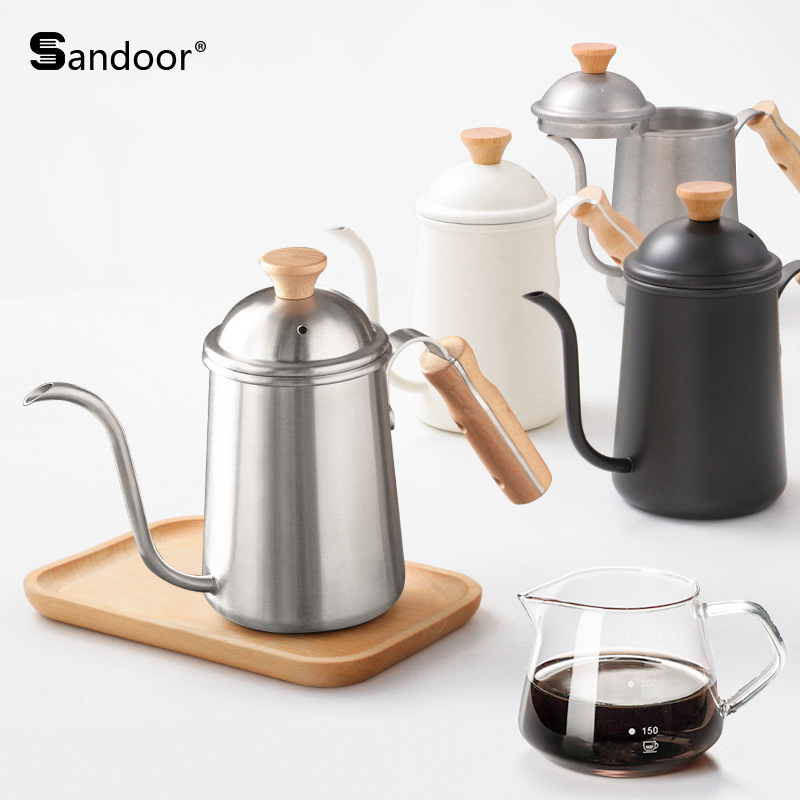 沙朵 日式木质手柄304不锈钢手冲壶户外露营长嘴咖啡壶野...