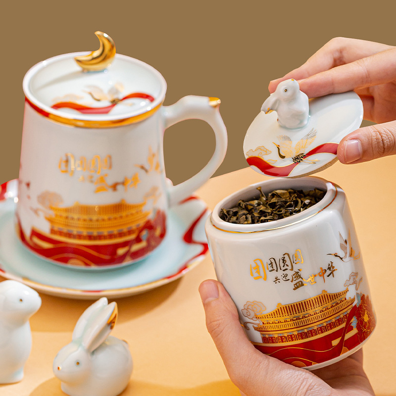 宫廷风陶瓷茶杯礼品 中秋文创商务礼品水杯定制 年会中秋端...