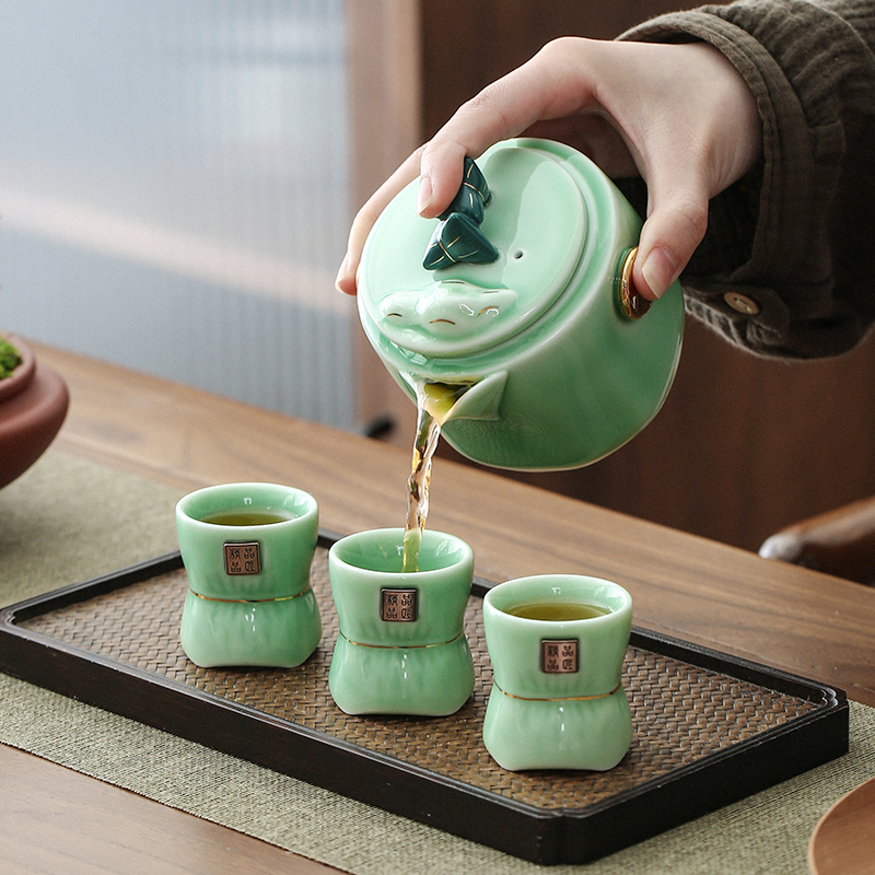 中式陶瓷旅行茶具套装便携式一壶三杯配茶叶罐
