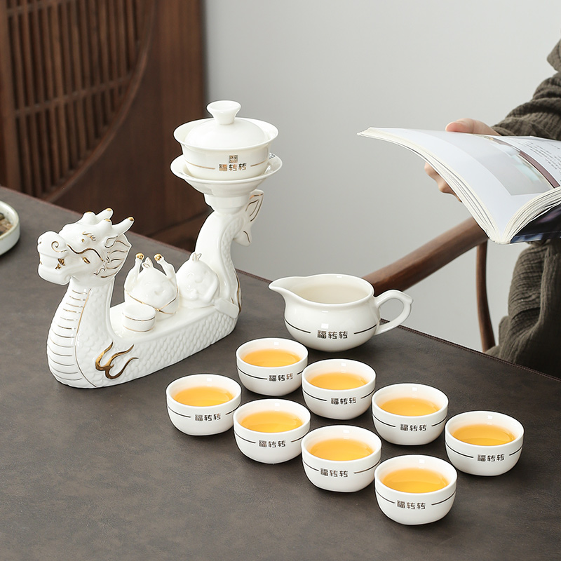 端午旋转工艺品赛龙舟创意节日功夫茶具礼品套装定制