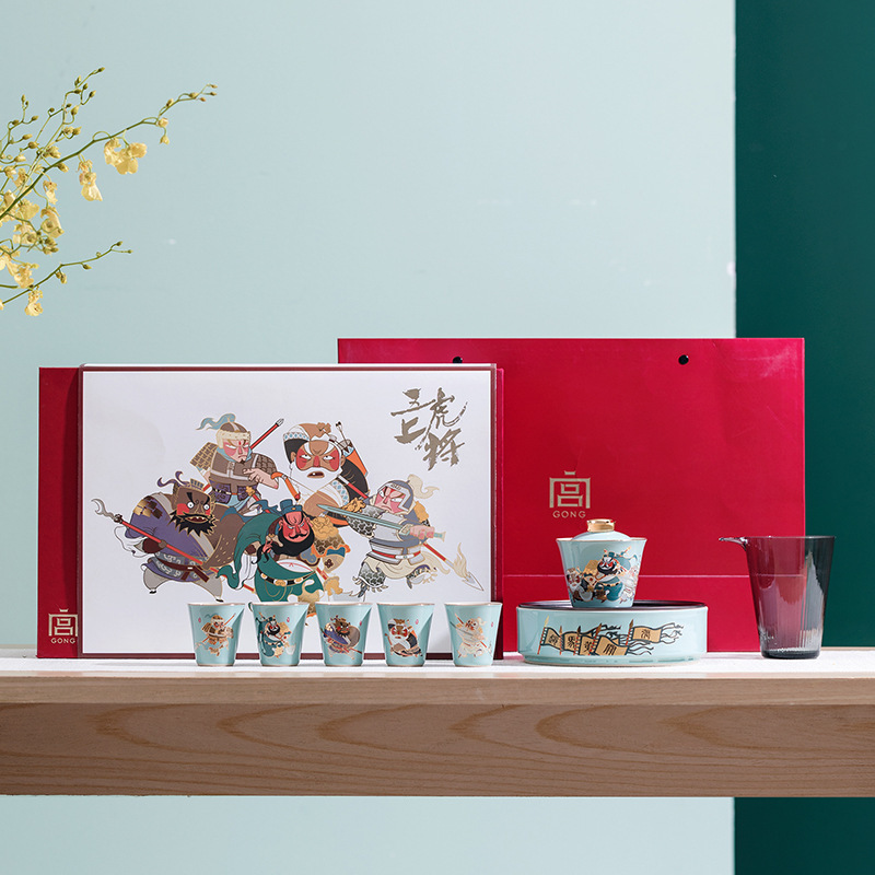 画棠文创国潮整套家用功夫茶具家用盖碗茶具描金礼盒套装套组...