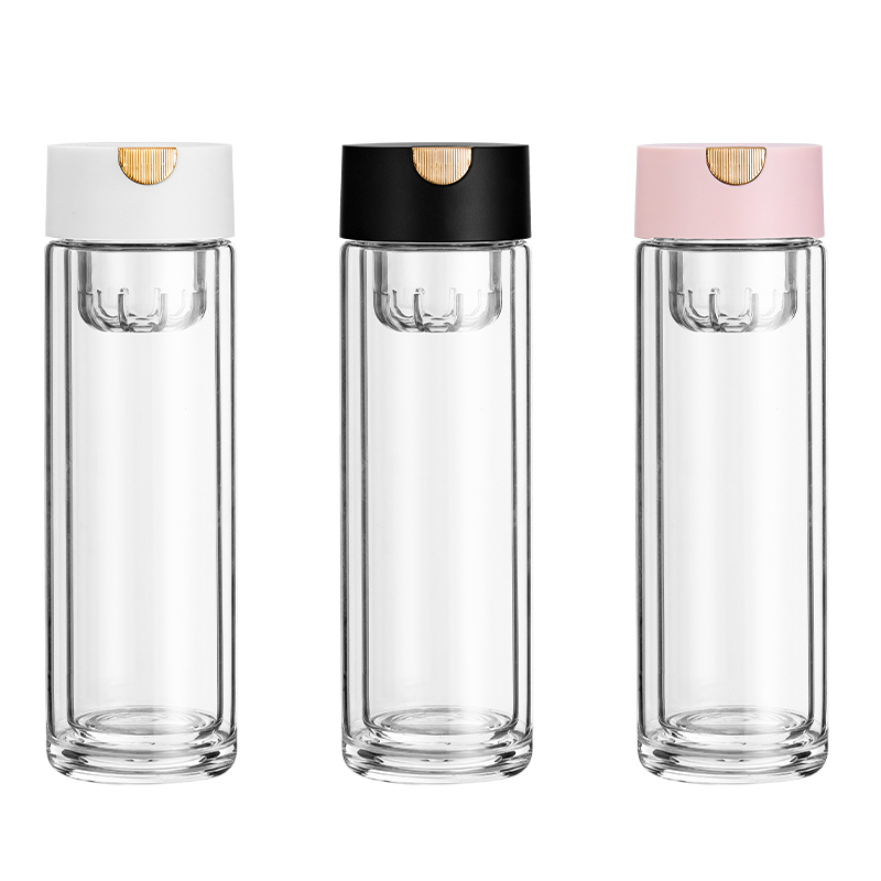磁吸式小巧弹跳仓茶水分离双层高硼硅玻璃杯茶杯定制