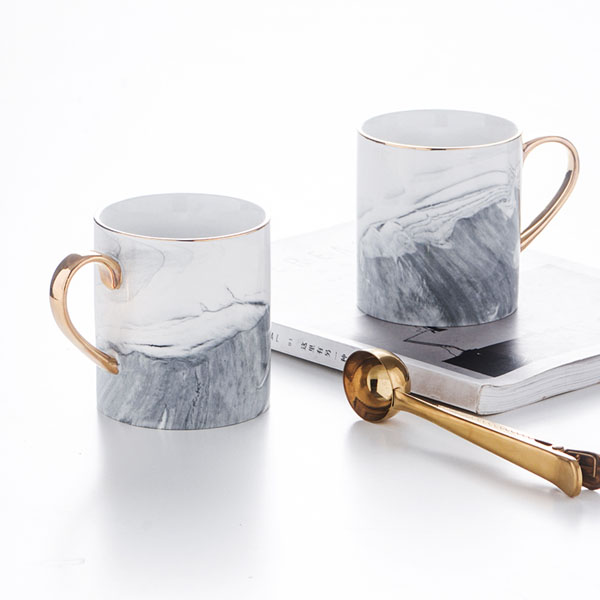 北欧复古风陶瓷马克杯咖啡杯子大容量水杯轻奢描金柄大理石纹...