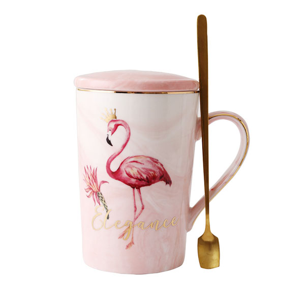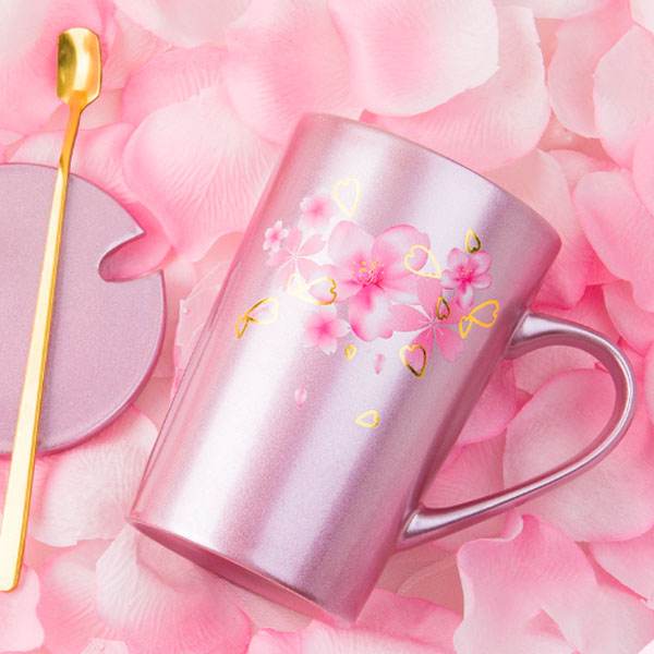 创意樱花陶瓷杯子可爱女学生水杯马克杯带盖勺咖啡杯可定制