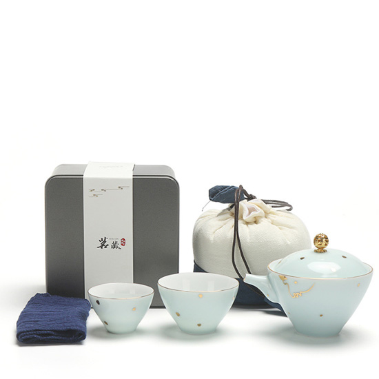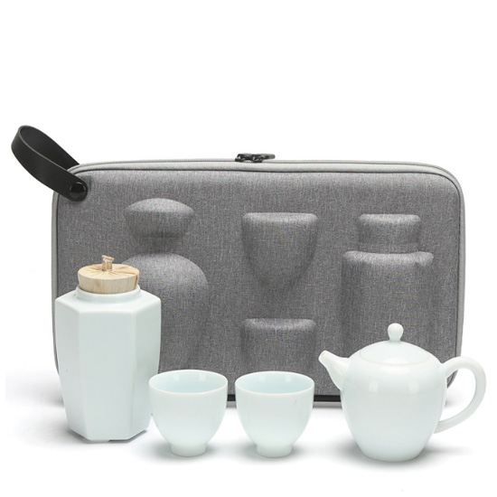 旅行茶具套装便携式青白瓷整套茶具一壶二杯一茶叶罐快客杯礼...