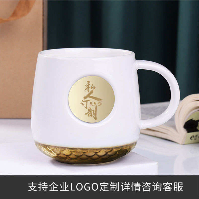 创意ins网红水杯 铜牌鱼鳞马克杯 星爸爸陶瓷杯子定制