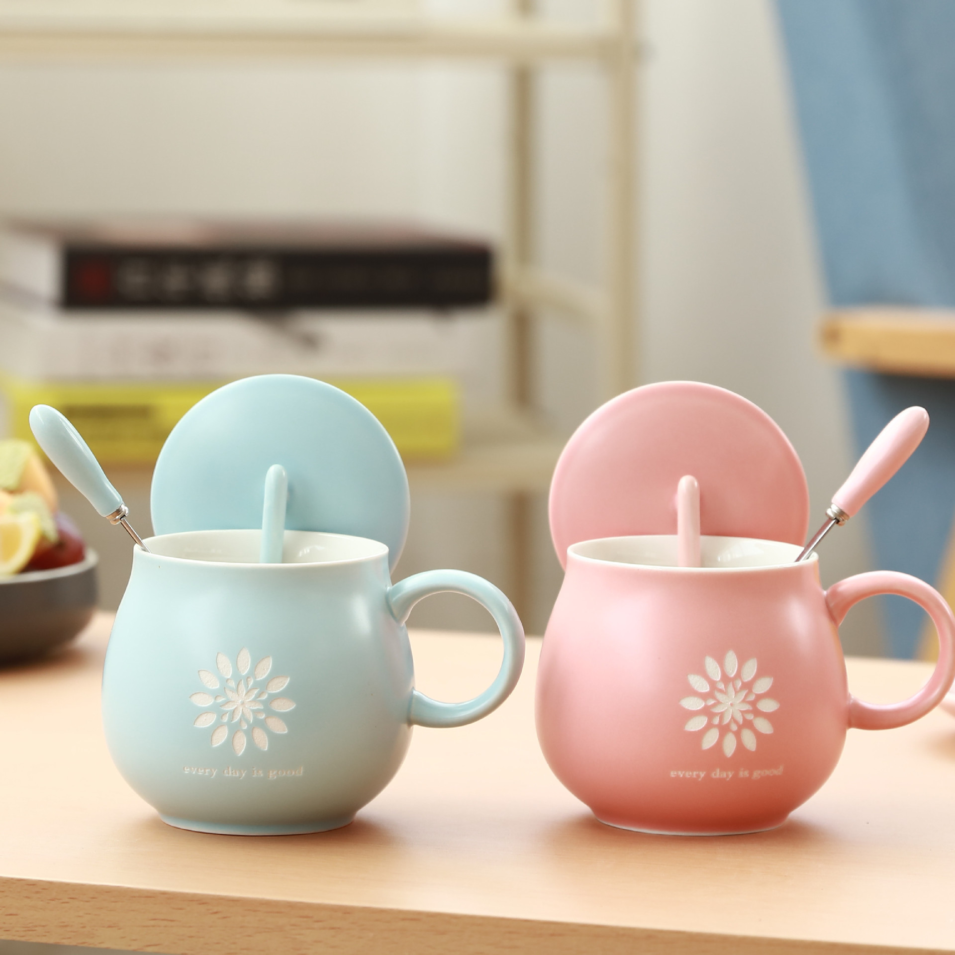 可爱大肚咖啡杯套装 带盖勺马克杯 陶瓷杯厂家礼品可定制l...