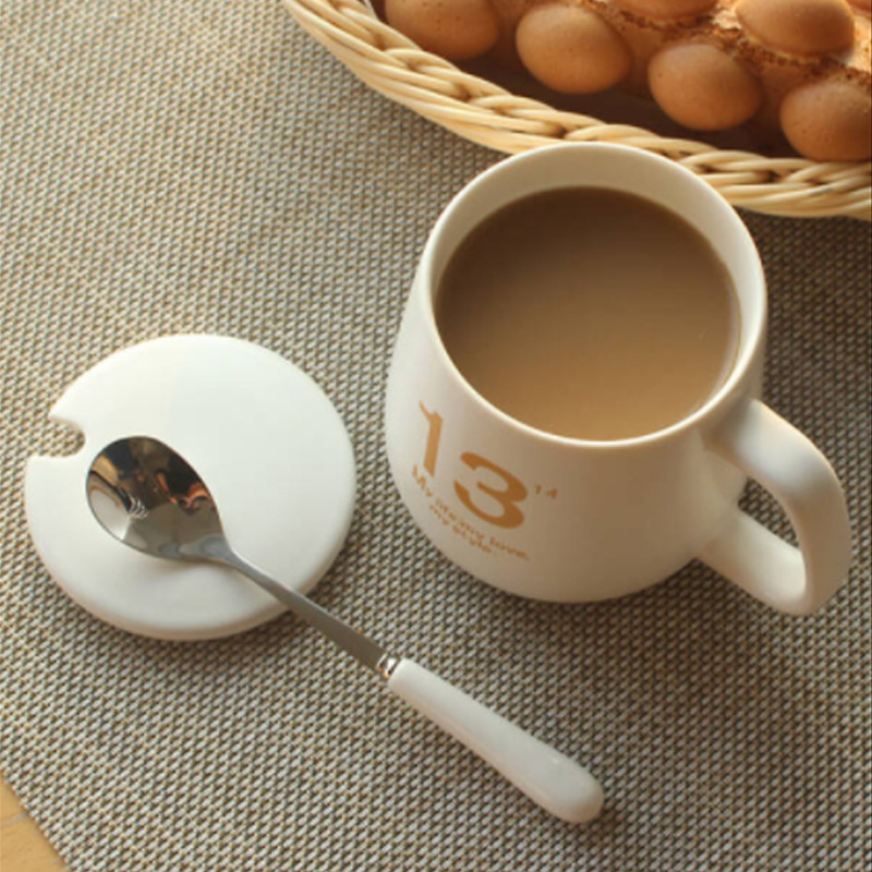 漱口杯情侣杯子1314陶瓷咖啡杯带盖办公室杯子马克杯促销...