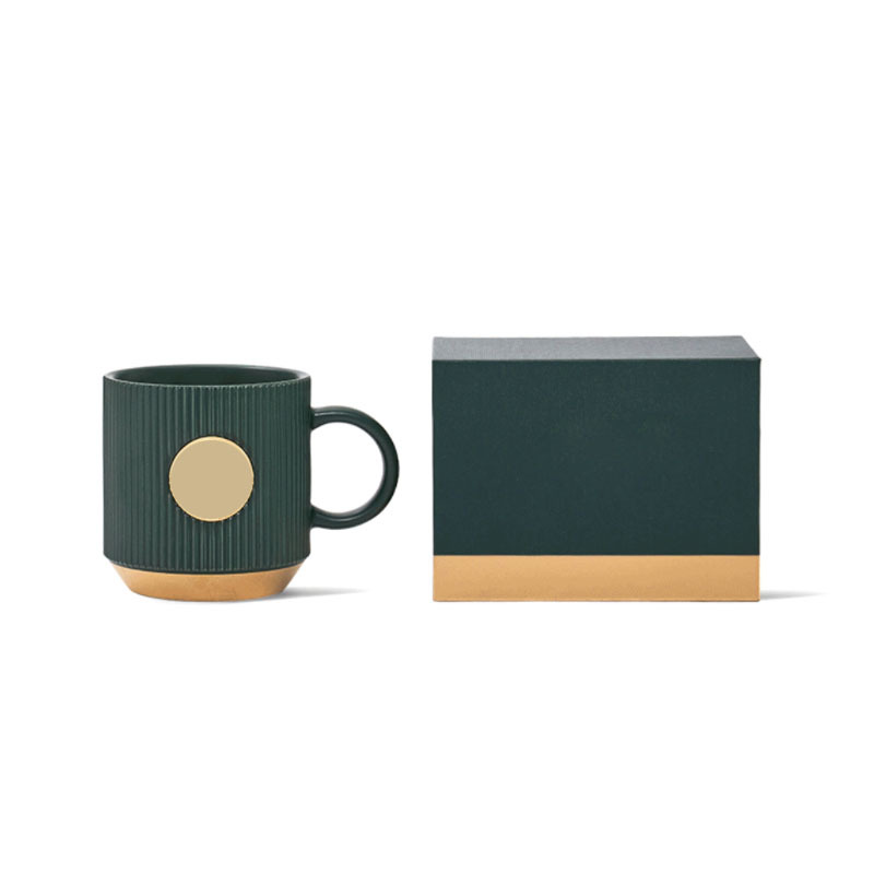 星巴墨绿色女神杯马克杯咖啡杯高档礼盒装美式陶瓷杯子竖纹杯...
