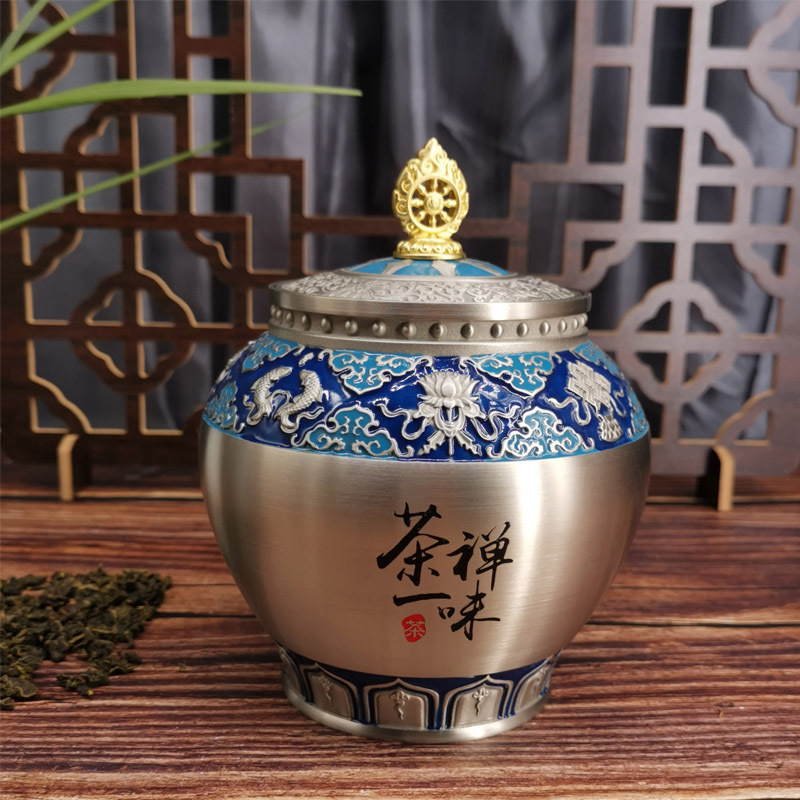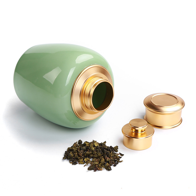 青瓷铝合金茶叶罐 金属盖密封普洱茶叶罐 香蜜罐茶礼品包装...