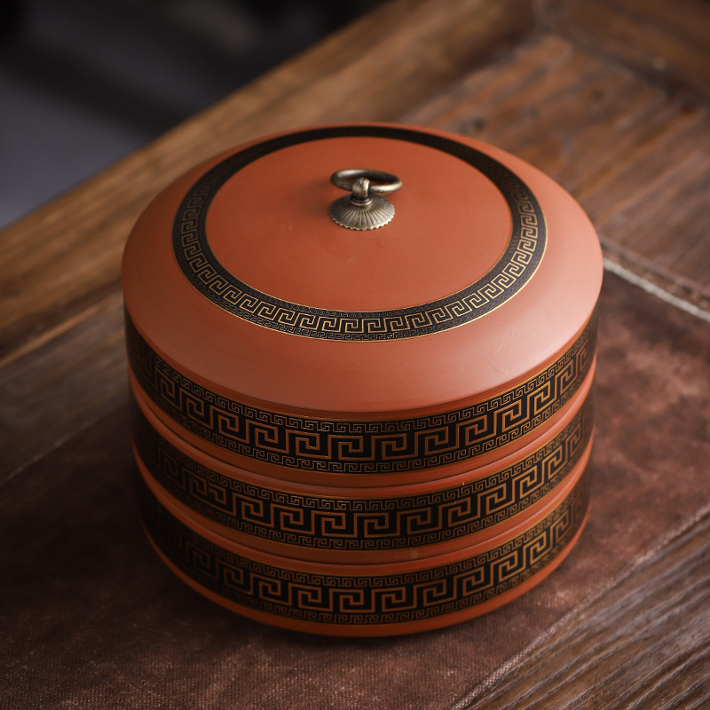 大号紫砂茶叶罐 普洱白茶357克七子茶饼罐 可叠加陶瓷茶...