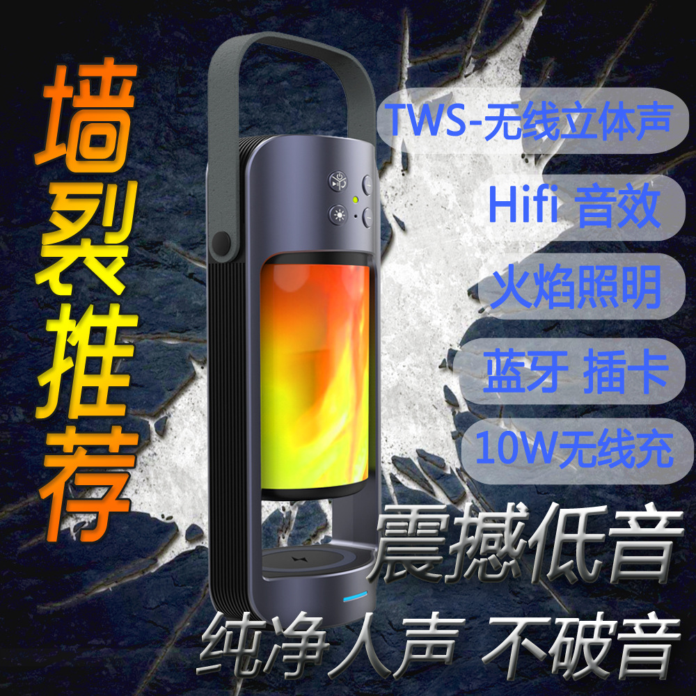 蓝牙火焰灯音箱 手提便携一体室外应急小夜灯 无线充功能蓝...