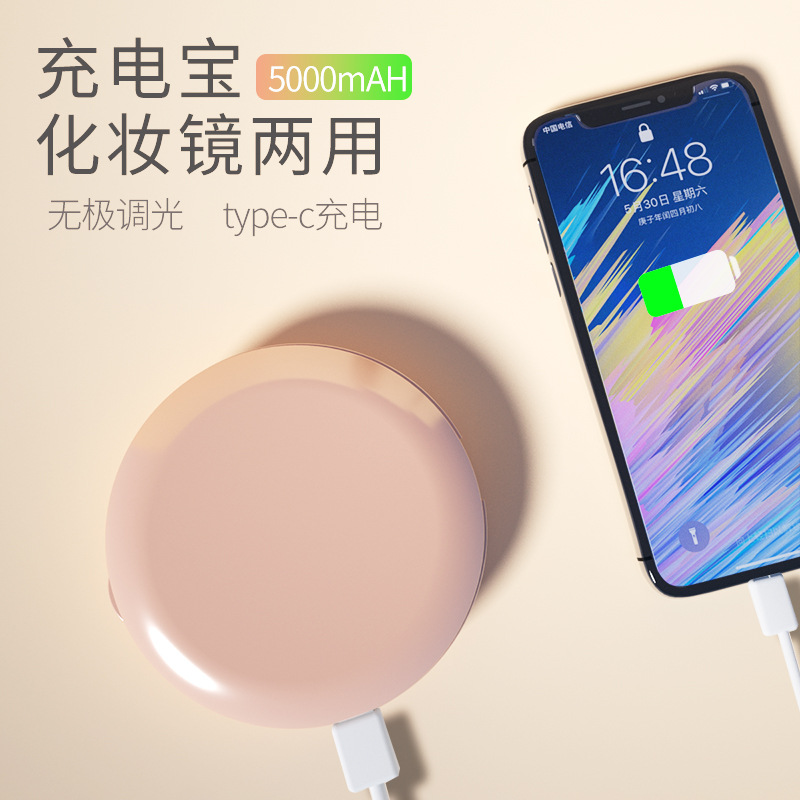 2022新款便携led充电宝带灯化妆镜 随身移动电源节日...