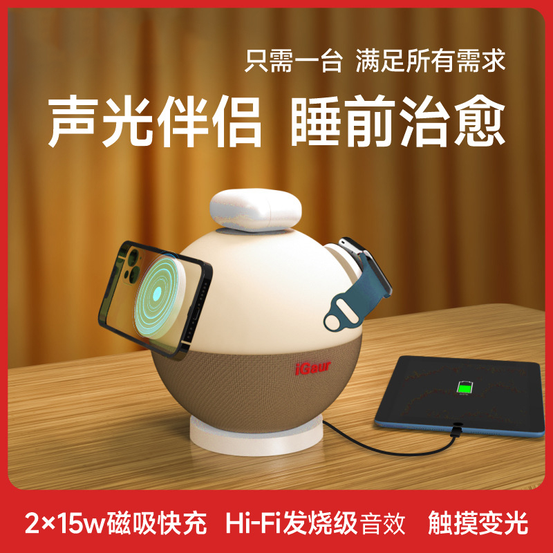 创意床头灯蓝牙音箱新款大功率三合一磁吸一站式手机无线充电...